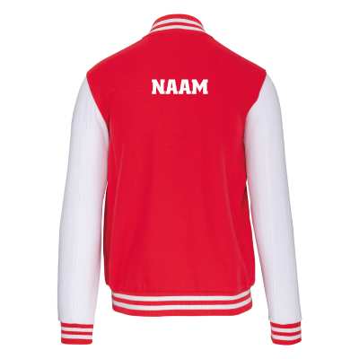 70% katoen / 30% polyester. Geborsteld fleece 3 draden. Contrasterende ingezette mouwen. Sluiting aan de voorkant met contrasterende drukknopen. Ribboord met 2 contrasterende biesjes aan kraag, mouwen en onderkant. 2 contrasterende omzoomde zakken aan de voorkant. Nektape met visgraatmotief en ophanglus in de kraag. Geen merklabel in de kraag, 320 g/m2.
